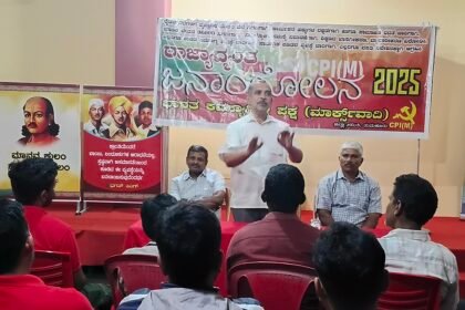 ರೈತರ ಬೆಳೆಗಳಿಗೆ ವೈಜ್ಞಾನಿಕ ಬೆಂಬಲ ಬೆಲೆ ನಿಗದಿಗಾಗಿ, ಕಾರ್ಮಿಕರ ಹಕ್ಕುಗಳ ರಕ್ಷಣೆಗಾಗಿ, ಹಾಗೂ ಸಾಮಾಜಿಕ ಭದ್ರತೆ ಜಾರಿಗಾಗಿ, CPI(M) ವತಿಯಿಂದ ರಾಜ್ಯದ್ಯಂತ ಜನಾಂದೋಲನವನ್ನು ಉದ್ದೇಶಿಸಿ ಸಿಪಿಐ(ಎಮ್) ರಾಜ್ಯ ಕಾರ್ಯದರ್ಶಿಗಳಾದ ಡಾ. ಕೆ. ಪ್ರಕಾಶ್ ಮಾತನಾಡಿದರು.